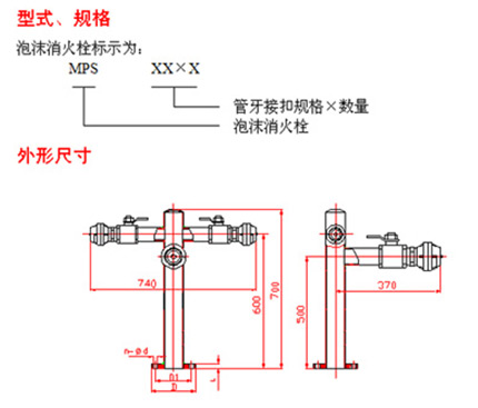 M P S系列泡沫消火栓是泡沫滅火系統(tǒng)的重要裝置之一,特別適用于大面積有火災(zāi)危險(xiǎn)的易燃液體和可燃物體的生產(chǎn)、儲(chǔ)存和使用的場(chǎng)所,安裝在保護(hù)區(qū)域內(nèi)預(yù)設(shè)的管道上,當(dāng)火災(zāi)發(fā)生時(shí)打開悶蓋,聯(lián)接消防水帶,打開球閥,向泡沫發(fā)生裝置輸送泡沫液。
